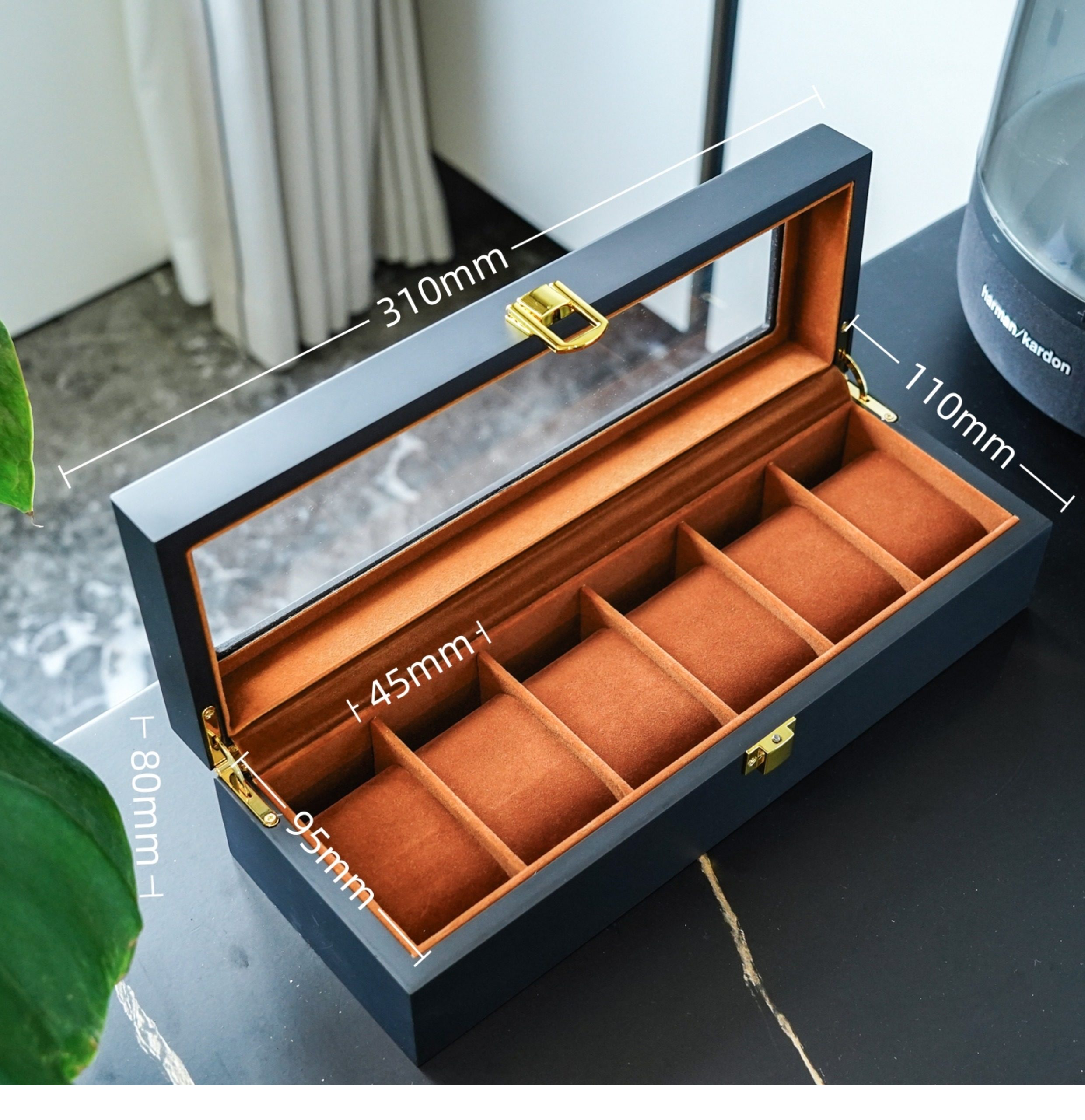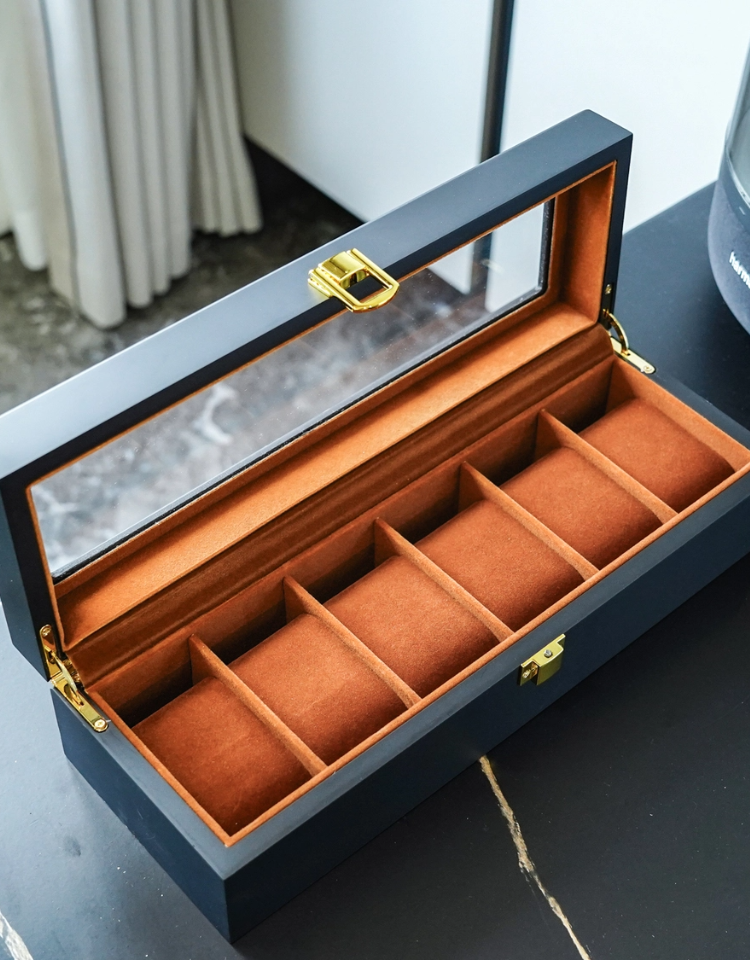 💖精緻木質結構💫6位設計👀咖色绒布內裡📦不僅是收納更是展示完美展示😊與保護您的珍藏!