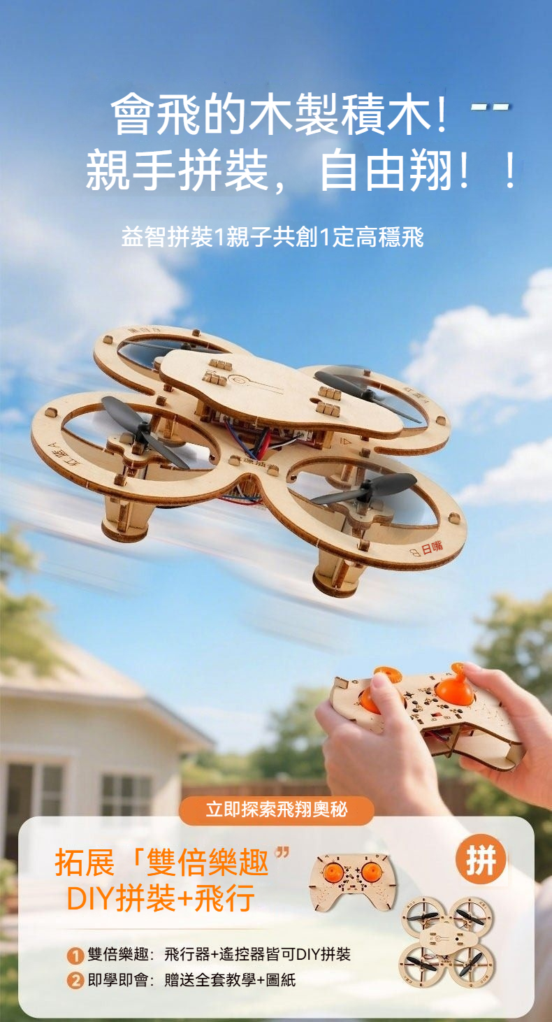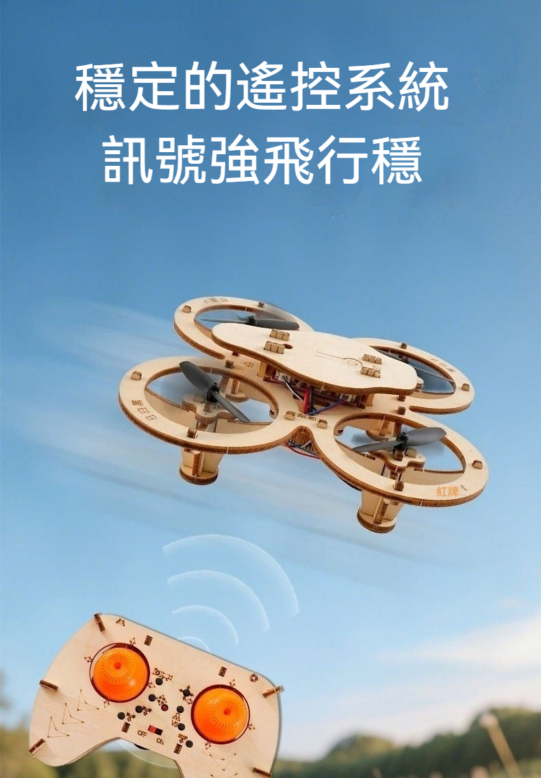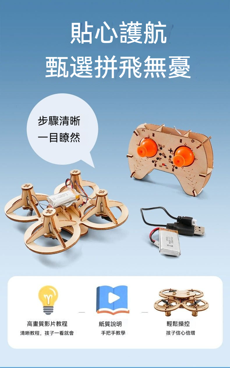 【🎁🎁限時優惠等你拿】🚀一起動手🚀把知識送上天空🌟🔹 四軸飛行結構🔹木質DIY拼裝🔹 動手+學習🔹遙控體驗🔹適合學校、家庭、科創活動 👨‍👩‍👧