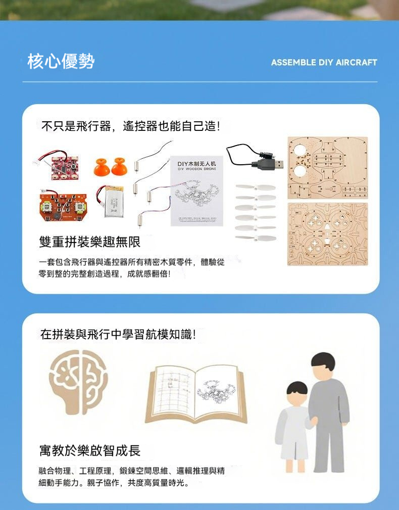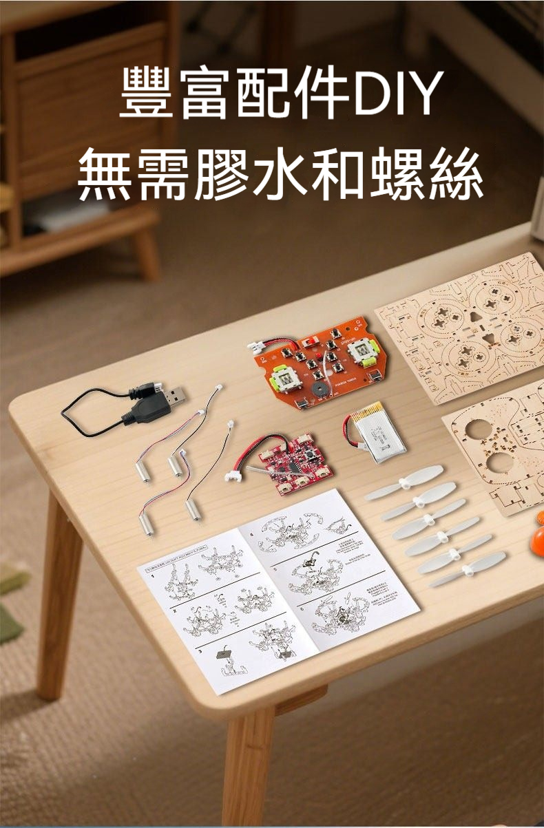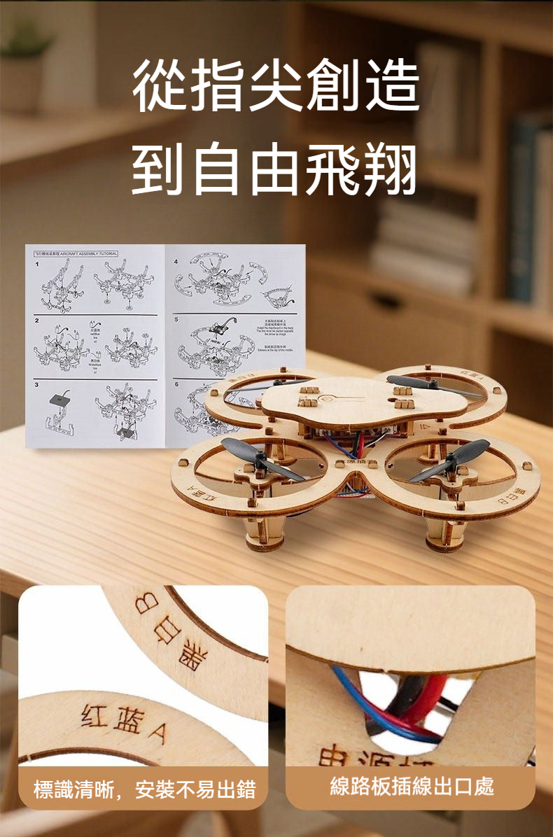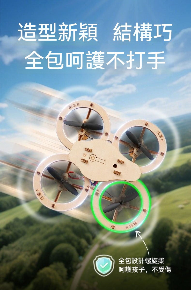 【🎁🎁限時優惠等你拿】🚀一起動手🚀把知識送上天空🌟🔹 四軸飛行結構🔹木質DIY拼裝🔹 動手+學習🔹遙控體驗🔹適合學校、家庭、科創活動 👨‍👩‍👧