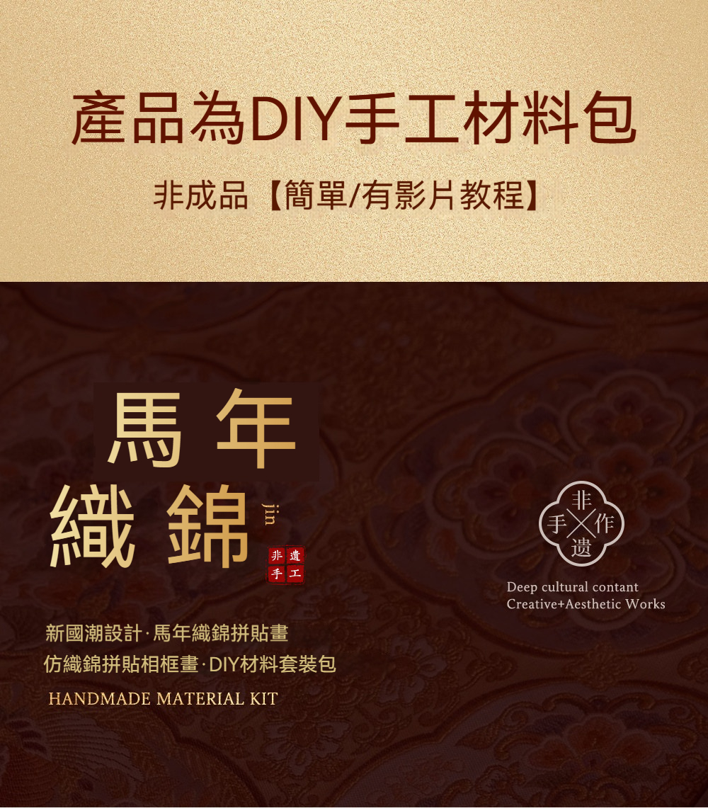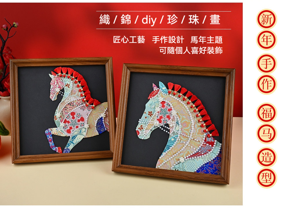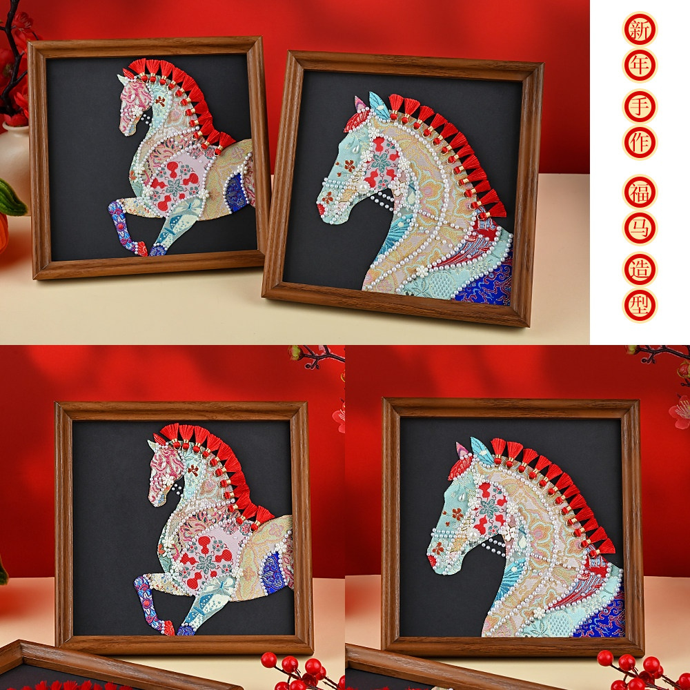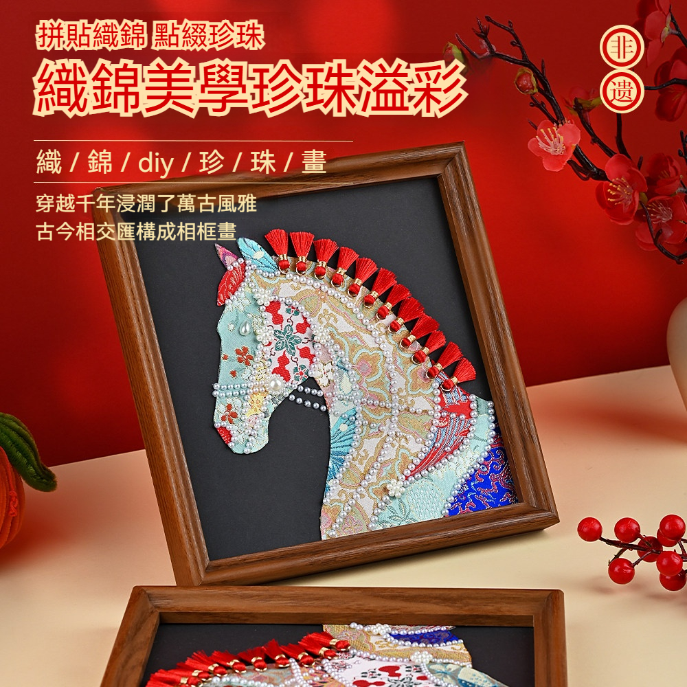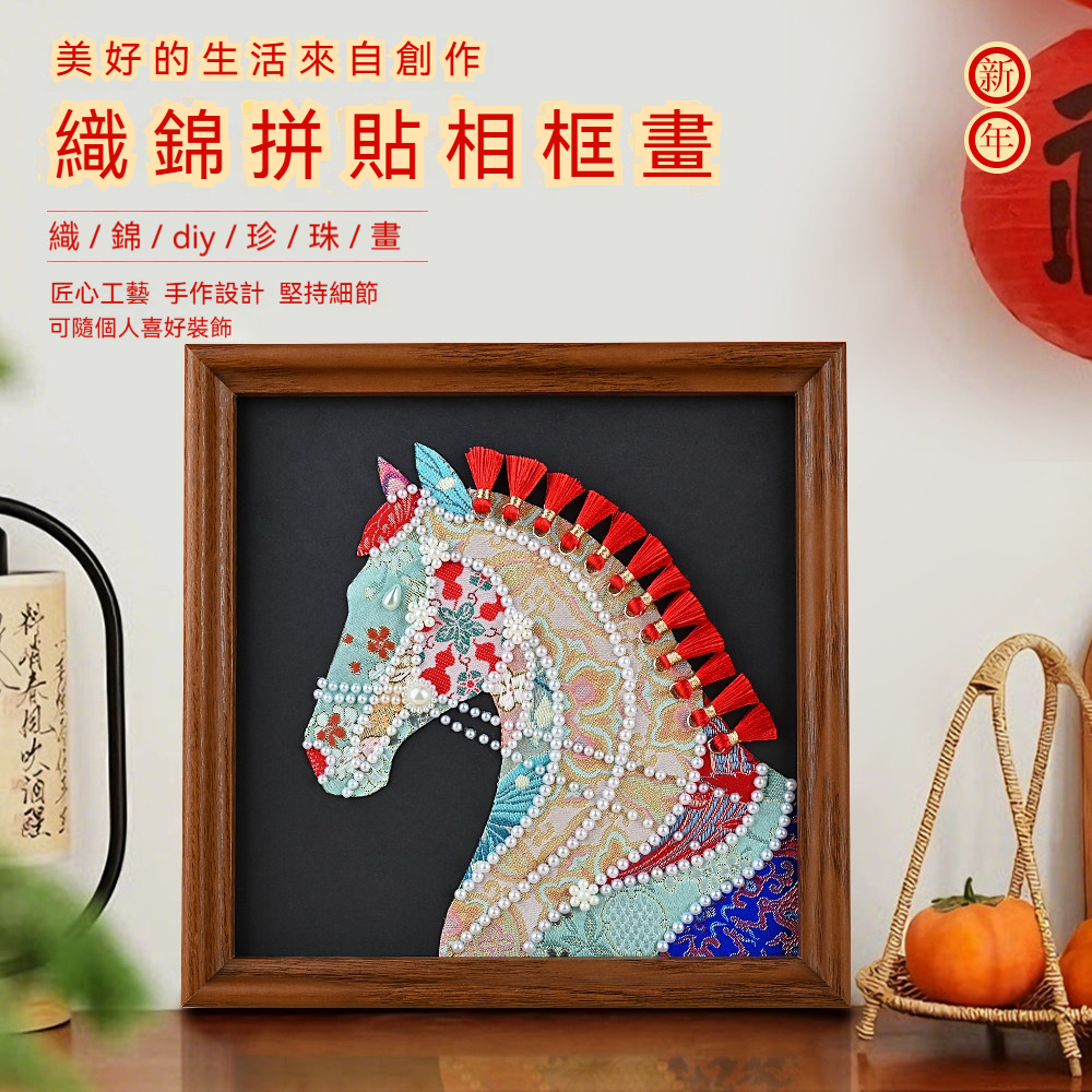 馬年織錦拼貼畫材料包—錦鬢A款+20*20相框
