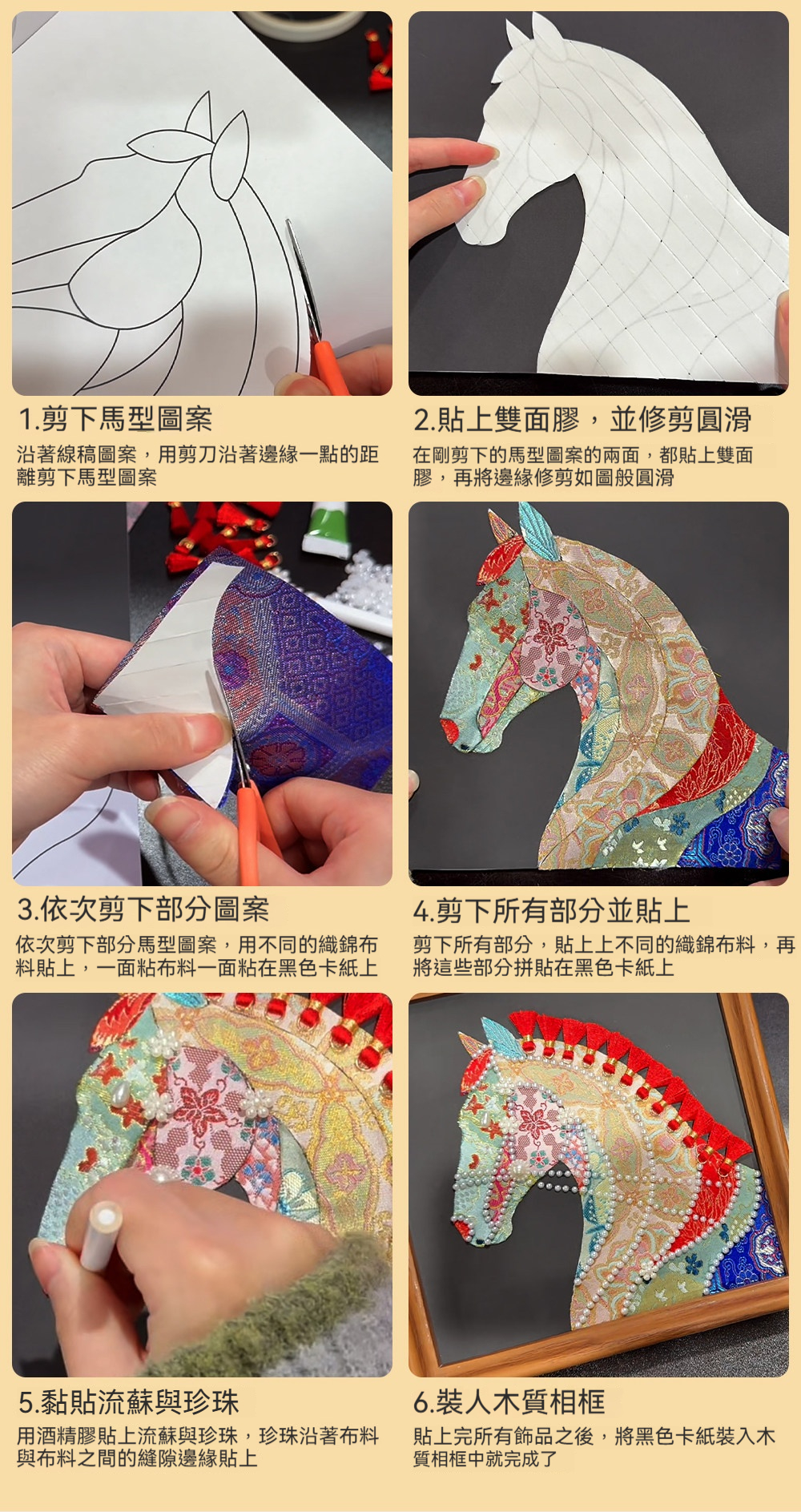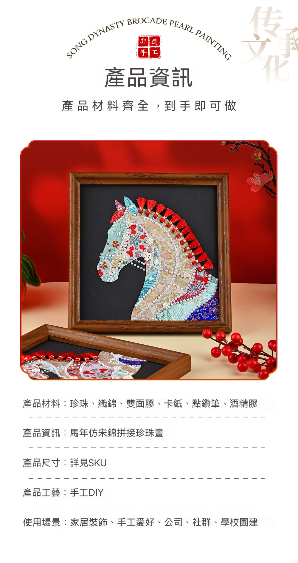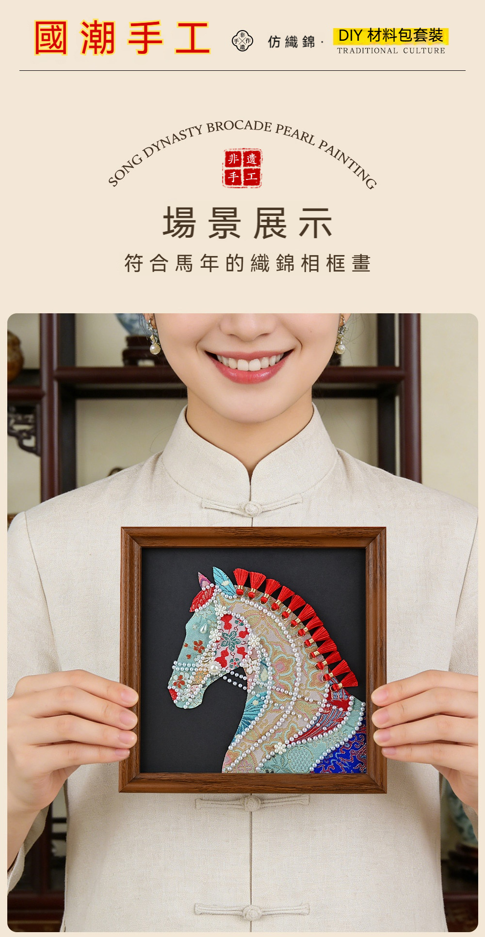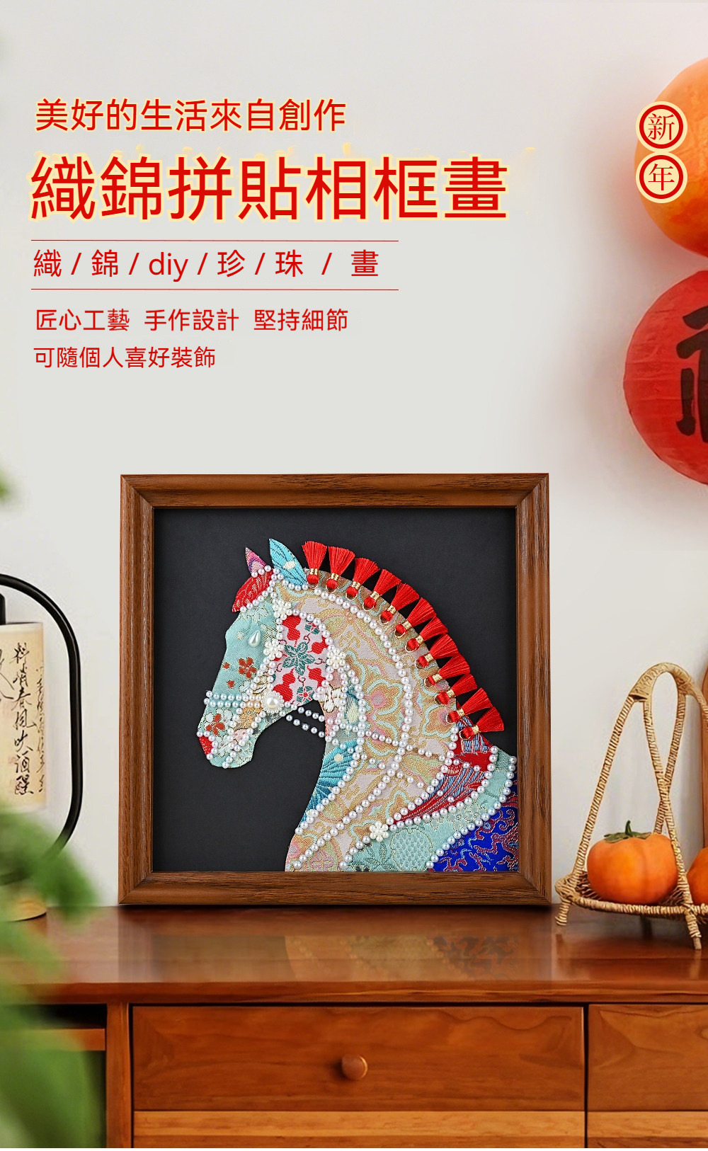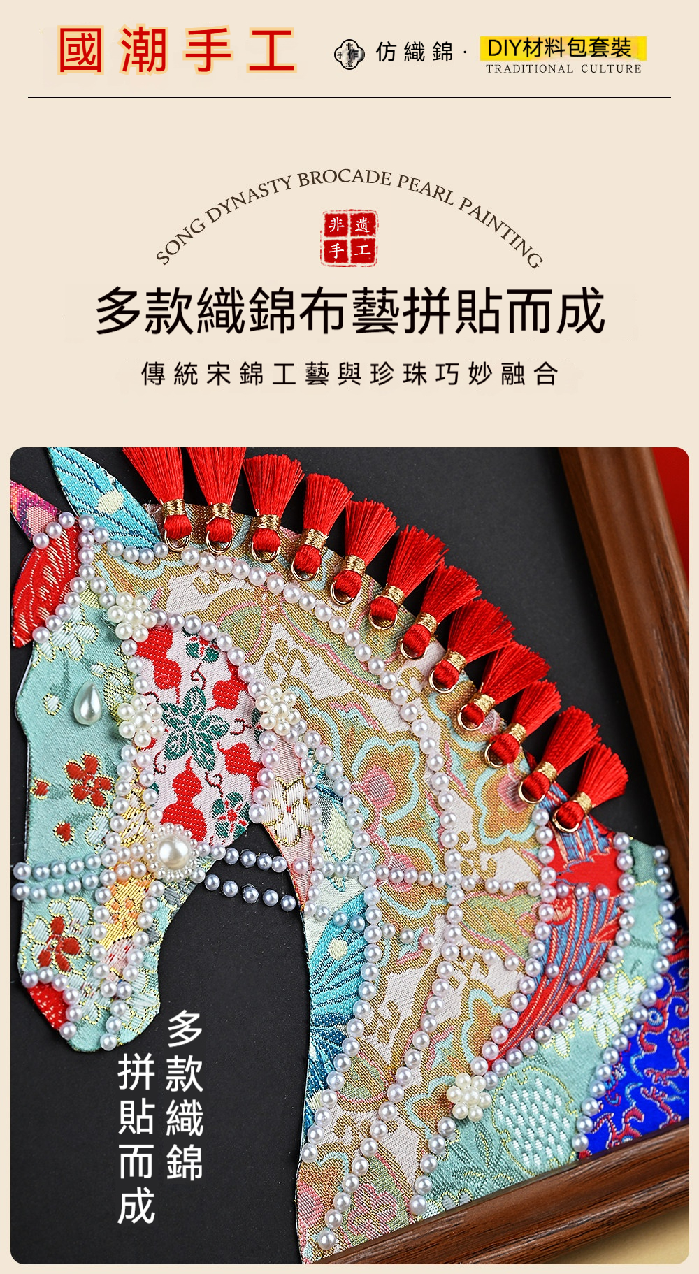 馬年織錦拼貼畫材料包—錦鬢A款+20*20相框